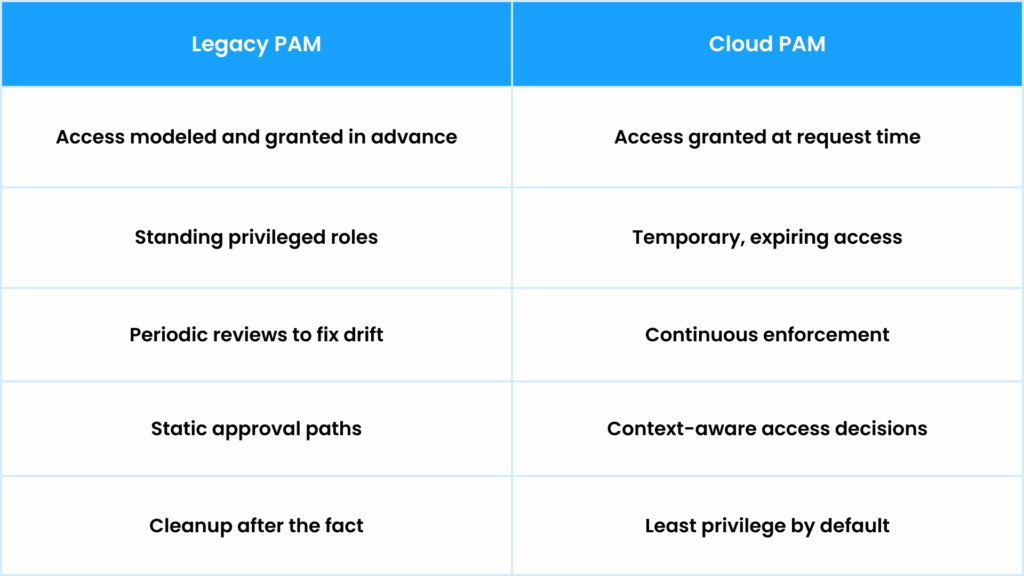 Legacy PAM was designed for static infrastructure. Cloud PAM is built for environments that change constantly. This comparison shows how those models diverge in practice.