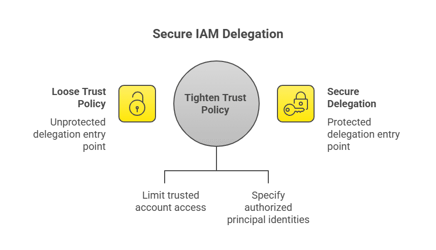 | 3. Trust policy is too permissive | The role trusts wide principals/accounts/services. | PassRole controls are bypassed if the role can be assumed too freely. |