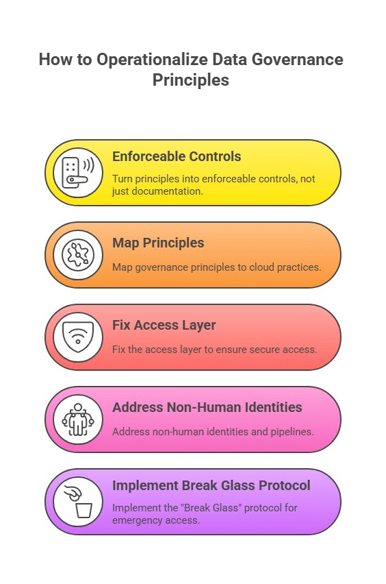 A data governance policy is only as effective as its enforcement layer. Static roles and manual approval queues create identity sprawl. For a policy to be more than a documented ideal, it must be programmatically enforced across every cloud resource and API.