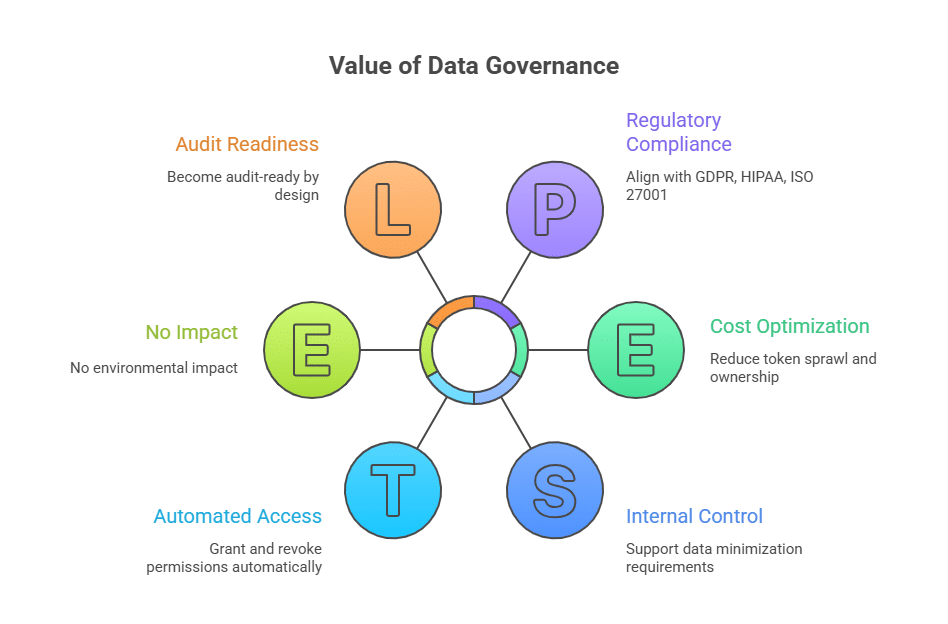 Enforcing time-bound, purpose-specific access aligns data governance with regulatory requirements, including GDPR, HIPAA, and ISO 27001. Both human and non-human identities can access only the data required for a specific task, therefore supporting internal control and data minimization requirements by default.