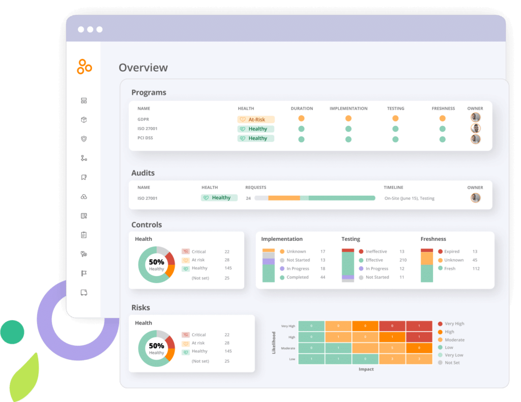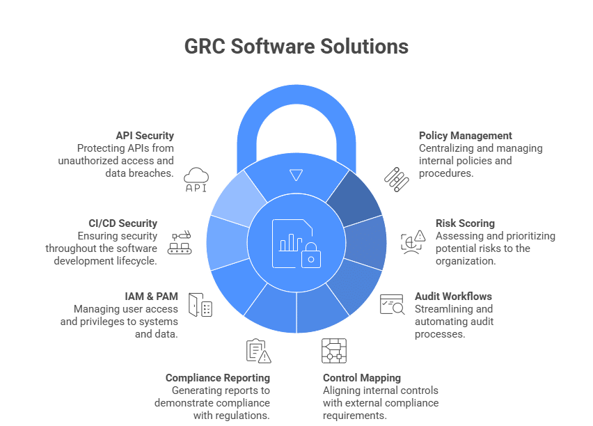 Governance, risk, and compliance (GRC) software solutions help you define controls, assess risk, document evidence, and prove they are meeting internal policies and external requirements.