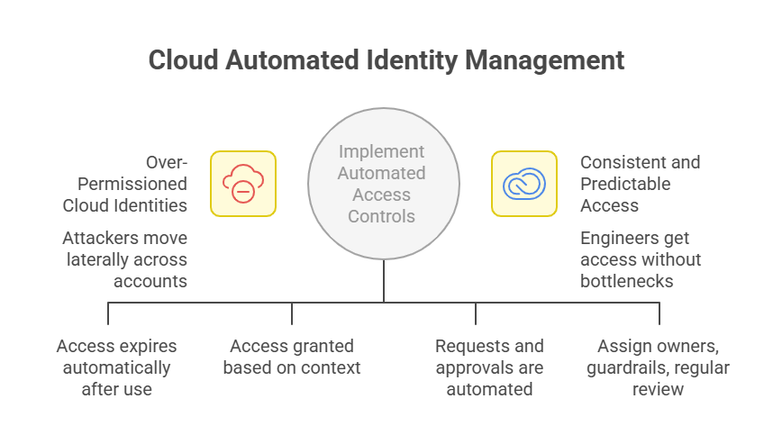 When you manage cloud identity well, access becomes time-bound, contextual, and auditable. The goal is straightforward: enforce least privilege continuously, and make elevated access expire by default.