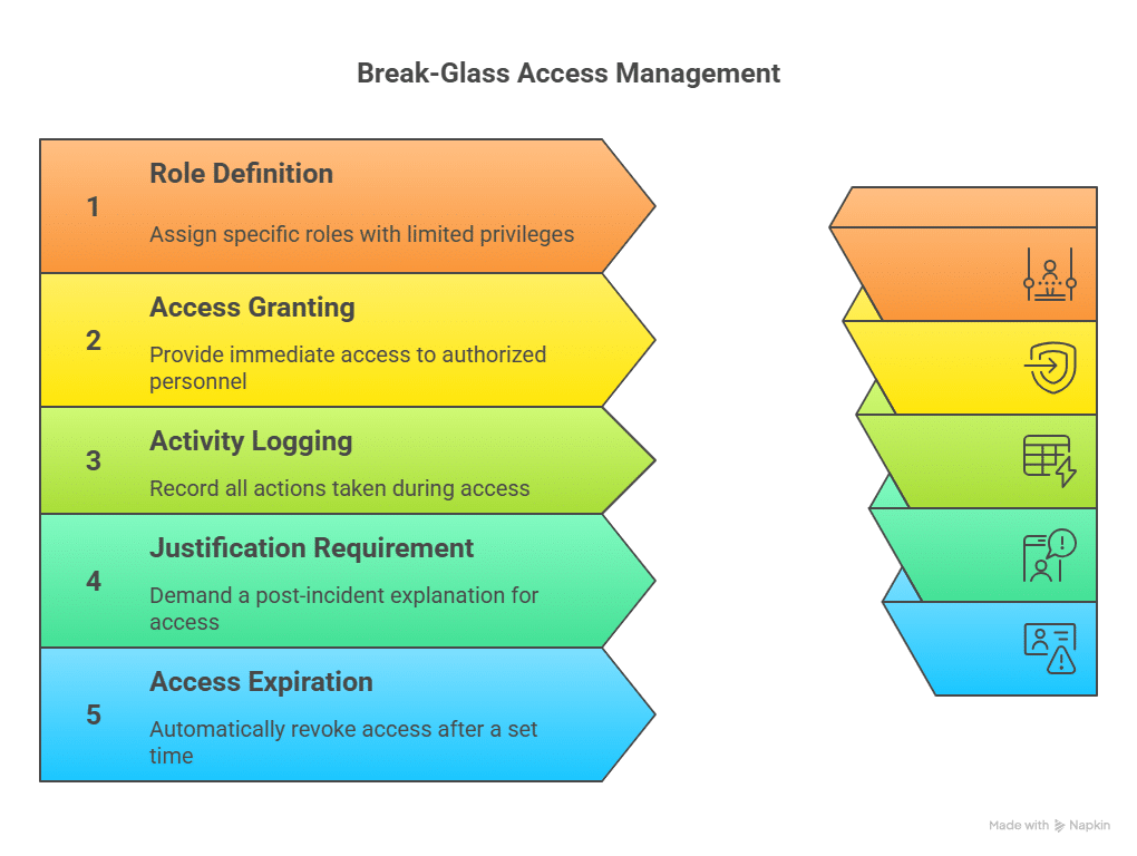 Outages and security incidents sometimes require immediate intervention. Break-glass mechanisms give engineers rapid access in those moments while keeping the activity logged and accountable.