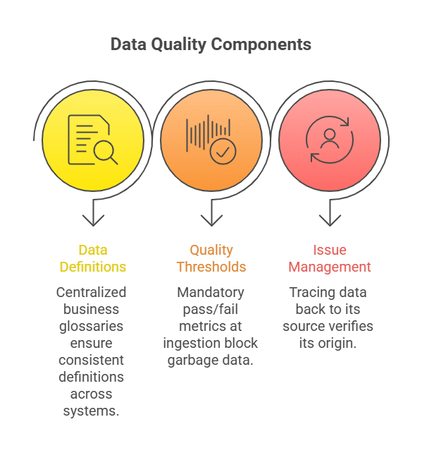 Data quality standards are the technical benchmarks that ensure data is fit for purpose. Without enforceable quality controls, organizations risk scaling bad decisions faster through analytics and AI.